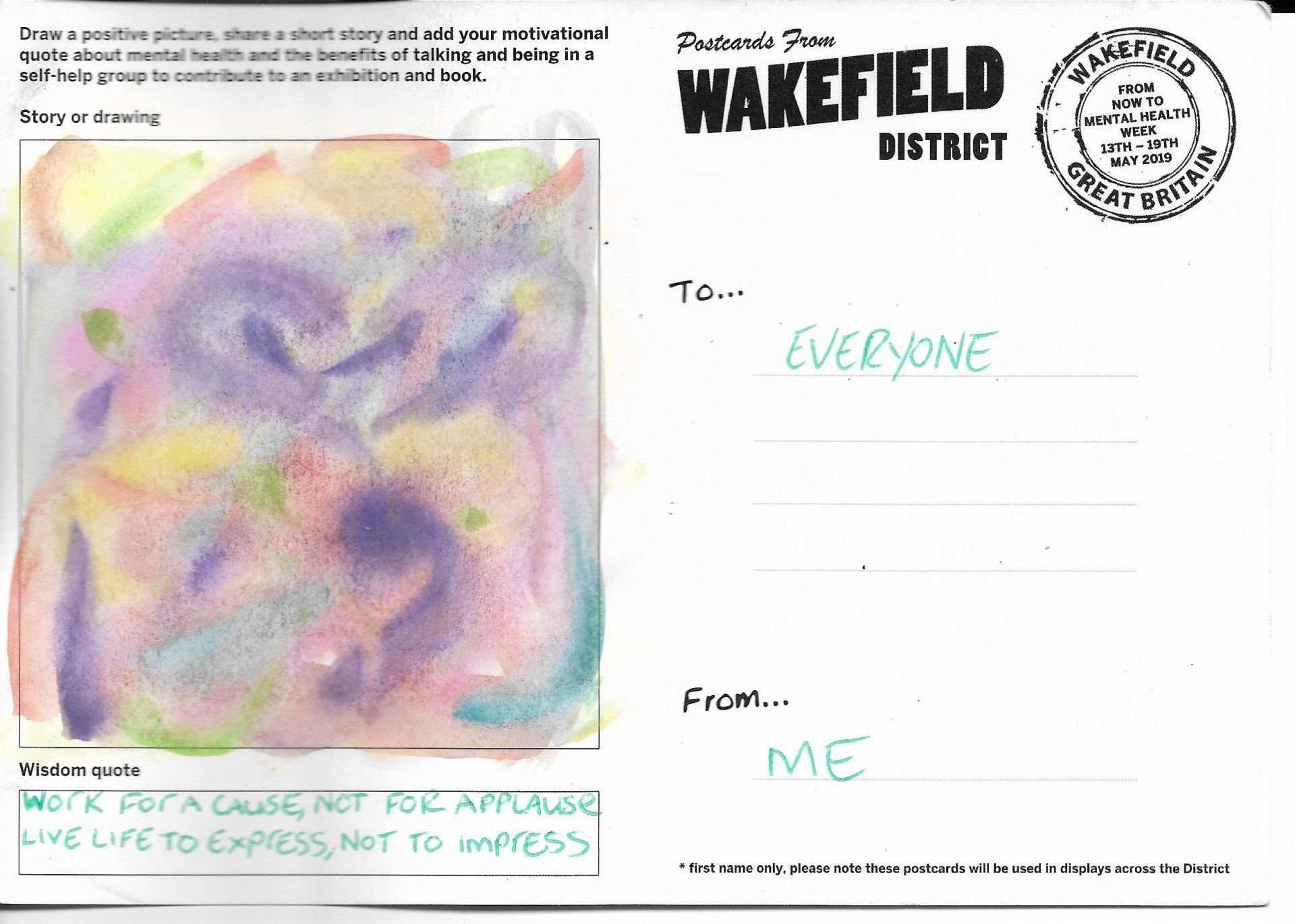 'Postcards from Wakefield' is an initiative of the Positive Mental Health Network. The network is a collection of community groups and organisations in Wakefield that have joined forces to help each other and share good practice. We are a proud member of the network and were excited to be part of Postcards from Wakefield when it launched in 2019.